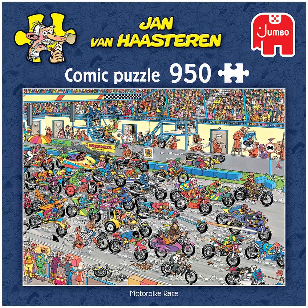 Start de motoren en race mee in deze spannende motorrace. Jan van Haasteren pakt het old school aan op deze antieke brompot.