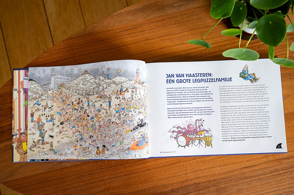 Dit nieuwe boek geeft een kijkje in de keuken van de Jan van Haasteren puzzels. Van de eerste schetsen van de tekenaars tot de puzzelstukjes bij jou op tafel. Ontdek wat er écht allemaal komt kijken bij het maken van een puzzel, maak kennis met de tekenaars én leer de Jan van Haasteren ‘puzzelfamilie’ kennen. Het boek is handgebonden en heeft een luxe hardcover met 115 rijk geïllustreerde pagina's. De afmeting van het boek is 33 x 23 x 1,5 cm.