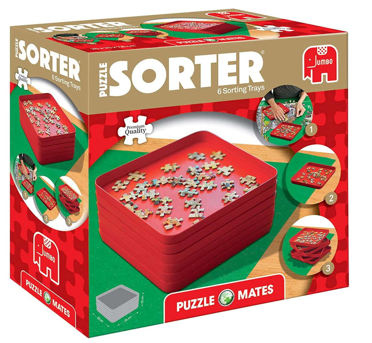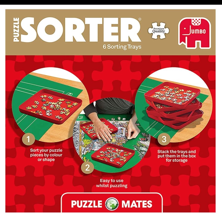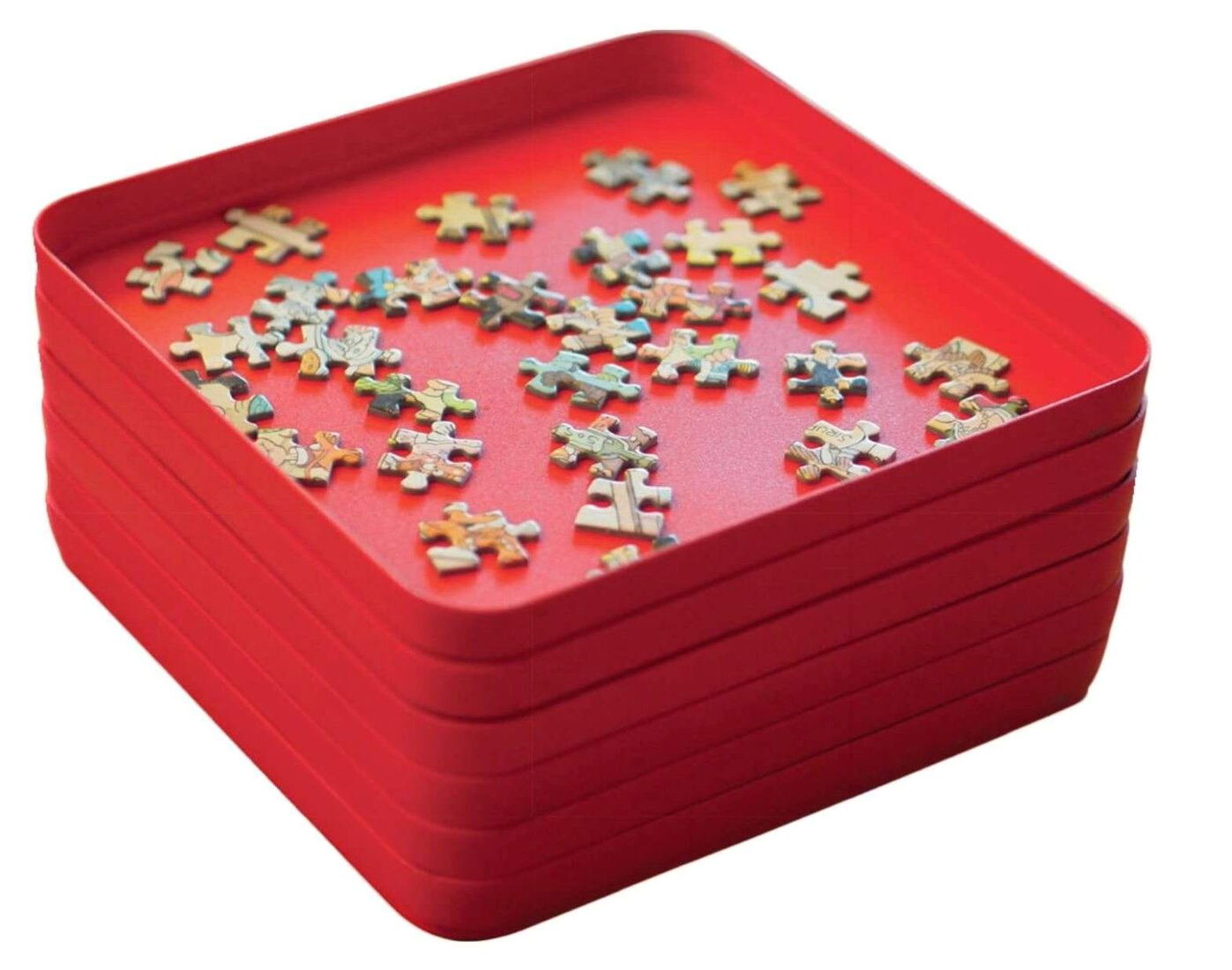 Deze set van 6 stevige rode sorteerbakjes is ideaal om je puzzelstukjes overzichtelijk te sorteren en comfortabel vanuit te puzzelen. Dankzij het handzame formaat van 20 × 20 cm heb je genoeg ruimte om stukjes per kleur, vorm of afbeelding te groeperen. De bakjes zijn stapelbaar, waardoor je ze gemakkelijk kunt opbergen en weinig ruimte innemen wanneer je ze even niet gebruikt. Tijdens het puzzelen kun je ze eenvoudig naast of boven elkaar plaatsen, precies zoals jij het prettig vindt. Perfect voor zowel beginnende puzzelaars als die-hard puzzlers die graag georganiseerd te werk gaan. Een onmisbare hulp om sneller en met meer plezier te puzzelen.